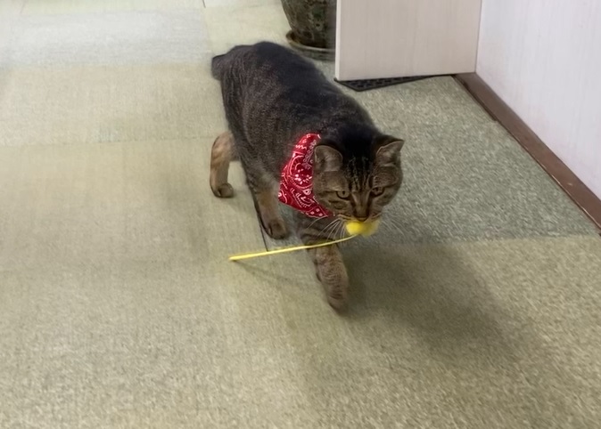 いつも通り、猫じゃらしを持ってきます。